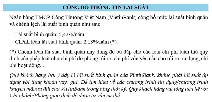 Vietnam Joint Stock Commercial Bank for Industry and Trade (VietinBank) announces the average interest rate and average interest rate margin for November as follows:
