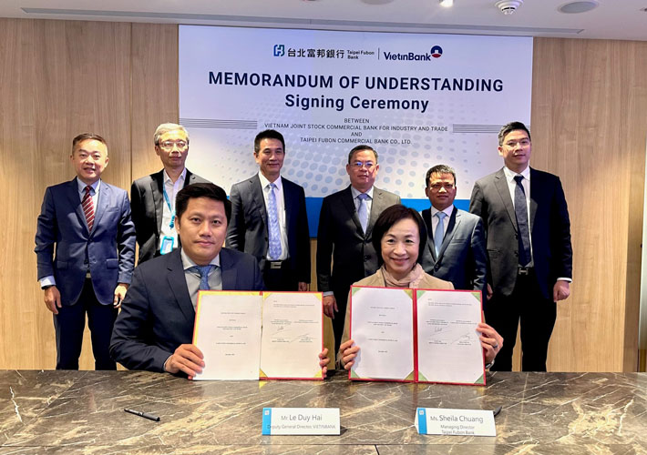 Tiếp đó, Đoàn Công tác VietinBank đã đến thăm và làm việc với TFB - ngân hàng top 5 Đài Loan và có hoạt động mạnh mẽ trên thị trường quốc tế. Hai bên đã cùng nhau trao đổi về những cải tiến đột phá của TFB trong lĩnh vực ngân hàng số (digital banking) và cấp tín dụng cho các doanh nghiệp đạt tiêu chuẩn ESG. Đồng thời, hai bên đã thực hiện ký kết Thỏa thuận hợp tác (MOU) với mục tiêu xây dựng mối quan hệ hợp tác trong nhiều lĩnh vực như: Tài trợ thương mại, cho vay ngoại tệ, các hoạt động trên thị trường tiền tệ, cho vay hợp vốn, đồng tài trợ dự án… Trên cơ sở MOU đã ký, hai bên đang đàm phán những bước cuối cùng để hoàn tất hợp đồng cấp tín dụng song phương trị giá 100 triệu USD cho VietinBank với mức lãi suất ưu đãi. Phát biểu tại buổi Lễ ký kết, Chủ tịch HĐQT VietinBank Trần Minh Bình hy vọng có thể tiếp tục phát triển đẩy mạnh các hoạt động tư vấn, hỗ trợ các doanh nghiệp Đài Loan và những doanh nghiệp Việt Nam có quan hệ xuất nhập khẩu; xem xét, lựa chọn các cơ hội phối hợp đồng tài trợ dự án hoặc tham gia các cấu trúc tài chính phù hợp; thúc đẩy hoạt động M&A và ESG; tư vấn về thu xếp nhu cầu tài chính với TFB.