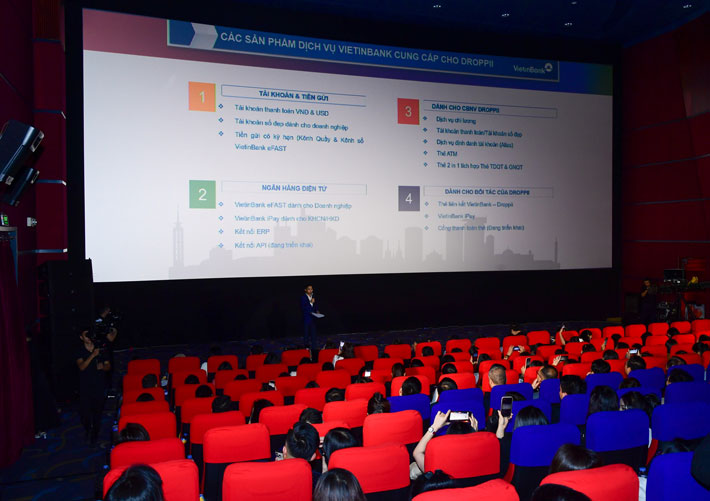 Tại buổi Lễ, ông Nguyễn Phúc Thịnh - Giám đốc VietinBank Thủ Thiêm đã giới thiệu đến đại biểu và hơn 400 đối tác của Droppii các sản phẩm, dịch vụ VietinBank cung cấp cho Droppii như: Tài khoản tiền gửi; dịch vụ ngân hàng điện tử và các dịch vụ dành riêng cho đối tác và cán bộ, nhân viên Droppii.
