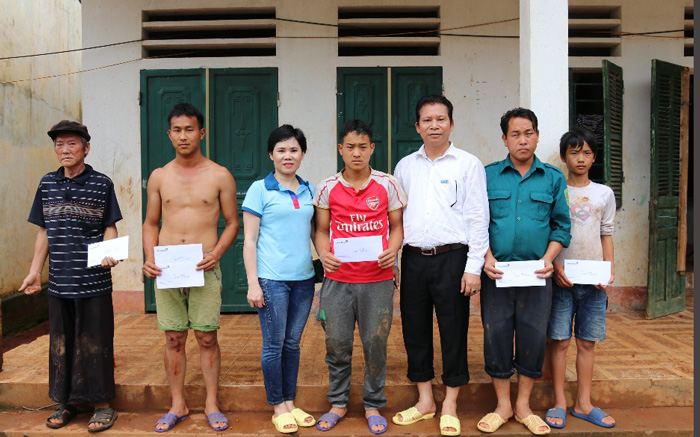 Đoàn đã trao số tiền 15 triệu đồng cho hộ gia đình có thân nhân bị chết và hỗ trợ mỗi gia đình bị thiệt hại về nhà ở 10 kg gạo và 6 triệu đồng.