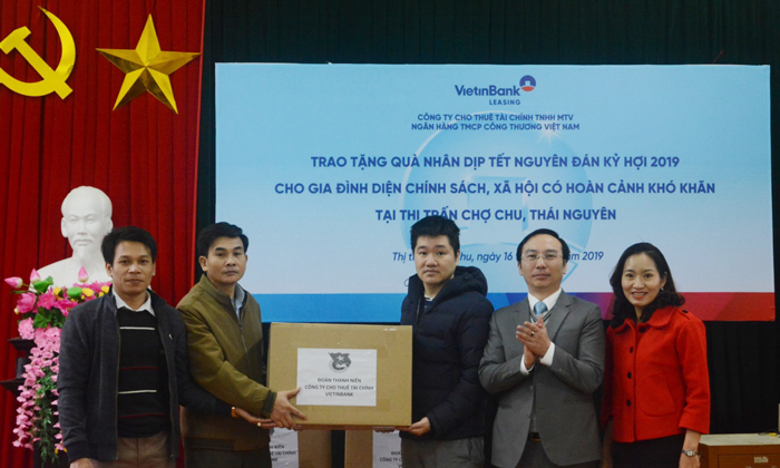Điểm đến trong dịp Tết năm 2019 của VietinBank Leasing là thị trấn Chợ Chu - một trong những địa bàn có tỷ lệ hộ nghèo cao tại huyện Định Hóa, tỉnh Thái Nguyên. Tại đây, VietinBank Leasing đã tặng 10 suất quà cho những hộ nghèo có hoàn cảnh đặc biệt khó khăn.